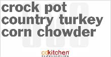| Crock Pot Country Turkey Corn Chowder Recipe | CDKitchen.com mexicorn, potato soup, chicken stock, celery seed, dried onion, potato, carrot, turkey, cheese, milk A 5-star recipe for Country Turkey Corn Chowder made in the crock pot made with chicken bouillon, milk, cream of potato soup, turkey, American cheese, Mexicorn, carrots In a bowl, crush the bouillon c...