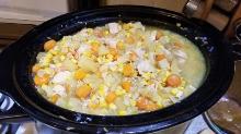 | Crock Pot - Chicken Corn Chowder Recipe - Low_cholesterol.Food.com butter, chicken, evaporated milk, chicken stock, pepper, potato, carrot, onion, celery, sweetcorn, salt, cheddar cheese AWESOME Flavor!! A satisfying and fulfilling chowder for any lunch or dinner....just add crusty bread!! A good year around mainstay entree in our home! Cooks while you work or shop! Easy preparation! ...