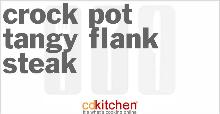 Tangy Crock Pot Flank Steak Recipe | CDKitchen.com beef flank steak, chili dried/powder, oil, pepper, green chili, dried garlic, onion, vinegar, salt, sugar, water A recipe for Tangy Flank Steak made in the crock pot made with flank steak, oil, onion, chopped green chilies, water, vinegar, chili powder, garlic Spray cooker with cooking spray. In a large skillet ...