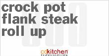 | Crock Pot Flank Steak Roll-up Recipe | CDKitchen.com butter, beef flank steak, stuffing mix, gravy, beef stock, mushrooms, spring onion, vegetable fat spread, red wine A recipe for Flank Steak Roll-up made in the crock pot made with mushroom stems and pieces, butter or margarine, stuffing mix, beef flank steak, brown In a bowl, toss the mushrooms, butter and dry stu...