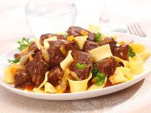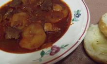 | Crock-Pot Hungarian Beef Goulash Recipe - Food.com butter, beef stewing meat, tomato paste, beef stock, pepper, paprika, mustard powder, cayenne pepper, mushrooms, onion, garlic, worcestershire sauce, salt, brown sugar, lemon juice, flour I had been searching for a good goulash recipe for quite some time, and finally made my own from bits of several others. No potatoes in this one (my crock-pot usually doesn't get them tender enoug...
