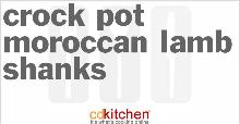 Crock Pot Moroccan Lamb Shanks Recipe | CDKitchen.com lamb shank, chicken stock, orange peel, almond, parsley, cinnamon, cumin, dried ginger, chickpea, prune, apricot, onion, garlic, salt, orange juice A 5-star recipe for Moroccan Lamb Shanks made in the crock pot made with chickpeas, prunes, dried apricot halves, onion, garlic, chicken broth, orange juice Mix all ingredients except lamb in an oval ...