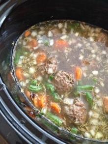 | Lotsa Veggies Meatball Soup (Crock Pot) Recipe - Food.com meat balls, beef stock, vegetables, pepper, bay leaf, tomato, pasta I really like recipes that make use of frozen mixed vegetables -- I feel so virtuous eating them and have none of the work preparing them.! And this one has frozen meatballs, too. Talk about ease-of-p...