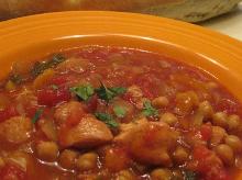 | Moroccan Chicken (Crock Pot) Redone Recipe - Food.com chicken thigh, red onion, tomato paste, yellow/orange pepper, turmeric, red chili, chickpea, raisin, garlic, sun dried tomatoes, tomato, aubergine/eggplant, peanut butter, balsamic vinegar Is this recipe redone, Serving Size: 1 (377) g Servings Per Recipe: 6 AMT. PER SERVING % DAILY VALUE Calories: 310.6 Calories from Fat 73 g 24 % Total Fat 8.1 g 12 % Saturated Fat 1.7 g 8 % Cho...