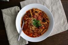 | Olive Garden Pasta E Fagioli Soup in a Crock Pot (Copycat) Recipe - Food.com spaghetti sauce, hot sauce, beef stock, ground beef, pepper, parsley, oregano, kidney bean, carrot, onion, celery, tomato, pasta This tastes exactly like the pasta e fagioli soup at the Olive Garden. Wonderful! Husband loves it! Serving Size: 1 (375) g Servings Per Recipe: 12 AMT. PER SERVING % DAILY VALUE Calories: 377.3 C...