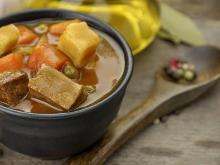 | Crock Pot Steak And Potato Soup Recipe | CDKitchen.com tomato paste, beef steak, beef stock, oil, pepper, peas, potato, carrot, onion, celery, sweetcorn, water, flour A good soup is magical for turning a cheaper cut of meat into something scrumptious. This hearty meat-and-potatoes meal is always a hit. Toss the steak cubes in the flour and shake off any excess. Set...