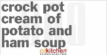 | Crock Pot Cream of Potato and Ham Soup Recipe | CDKitchen.com hash brown, mushroom soup, pepper, parsley, carrot, onion, celery, ham, cheddar cheese, milk powder, water A 5-star recipe for Cream of Potato and Ham Soup made in the crock pot made with shredded frozen hash brown potatoes, celery, onion, carrots, ham, Cheddar cheese, water Grease the inside of the crock ...