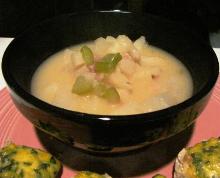 | Crock Pot - Cheesy Ham Potato Soup Recipe - Food.com creamed corn, chicken stock, cornstarch, pepper, potato, carrot, onion, celery, ham, salt, cheddar cheese, milk, water COMFORT FOOD! Flavors blend well in this soup/chowder which can easily be cooked stovetop or in a crock pot. A great way to use leftover ham. EASY preparation. Your family will love this soup! Serving...