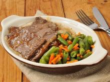 | Dilled Pot Roast (Crock Pot) Recipe - Food.com beef chuck steak, oil, pepper, dill, salt, noodles, yogurt (plain), water, flour Source: Better Homes and Gardens Serving Size: 1 (208) g Servings Per Recipe: 6 AMT. PER SERVING % DAILY VALUE Calories: 380.1 Calories from Fat 144 g 38 % Total Fat 16.1 g 24 % Saturated Fat 5....