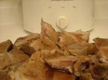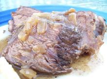 | Crock-Pot Pot Roast Recipe - Food.com mushroom soup, onion soup mix, thyme, pepper, garlic, beef, worcestershire sauce Easy crock pot pot roast Serving Size: 1 (213) g Servings Per Recipe: 6 AMT. PER SERVING % DAILY VALUE Calories: 338.6 Calories from Fat 108 g 32 % Total Fat 12.1 g 18 % Saturated Fat 4.4 g 22 %...