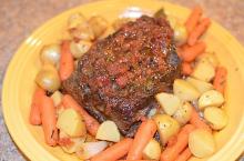 | Crock Pot Pot Roast Recipe - Food.com beef rump roast, beef consomme, pepper, button mushroom/champignon, potato, carrot, onion, salt, water, flour I made this last night for dinner and it was so easy and awesome. I breezed in at 6:30 and dinner, was ready and complete with a bag salad and some bread! Serving Size: 1 (463) g Servings Per Recipe:...