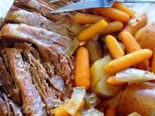 | Don's Pot Roast (Crock Pot) Recipe - Food.com onion soup mix, mushrooms, potato, carrot, onion, celery, beer/lager My husband loves to make pot roast in the crock pot on the weekends. This is his favorite way of making them. Depending on the size of the roast, you can add all of the veggies to the crockpot for a o...