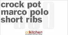 | Crock Pot Marco Polo Short Ribs Recipe | CDKitchen.com beef stock, cornstarch, pepper, horseradish, dried ginger, onion, tomato, beef ribs, salt, red wine, water A recipe for Marco Polo Short Ribs made in the crock pot made with beef short ribs, tomato, beef broth, red wine, onion, horseradish, salt, black pepper In a slow cooker, combine ribs, tomato, broth, ...