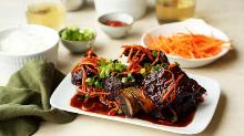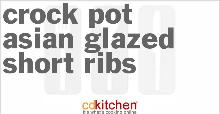 | Crock Pot Asian Glazed Short Ribs Recipe | CDKitchen.com hot sauce, apricot jam/preserve, onion soup mix, cornstarch, beef ribs, apple cider vinegar, soy sauce, brown sugar, water A recipe for Asian Glazed Short Ribs made in the crock pot made with beef short ribs, apricot preserves, chili sauce, brown sugar, soy sauce, onion soup mix In slow cooker, combine all ingredients exc...