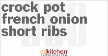 | Crock Pot French Onion Short Ribs Recipe | CDKitchen.com onion soup mix, olive oil, potato, onion, beef ribs, red wine, water A recipe for French Onion Short Ribs made in the crock pot made with beef short ribs, olive oil, French onion soup mix, yellow onions, water, red wine, red Brown short ribs with olive oil in Dutch ove...