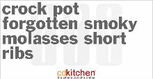 | Crock Pot Forgotten Smoky Molasses Short Ribs Recipe | CDKitchen.com tomato sauce, liquid smoke, pepper, onion, beef ribs, vinegar, salt, molasses A 5-star recipe for Forgotten Smoky Molasses Short Ribs made in the crock pot made with beef short ribs, salt and pepper, tomato sauce, vinegar, instant minced onion, molasses Sprinkle salt and pepper...