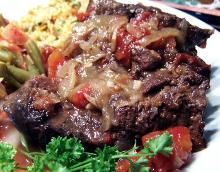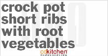 | Crock Pot Short Ribs with Root Vegetables Recipe | CDKitchen.com beef chuck steak, tomato paste, chicken stock, olive oil, thyme, pepper, cloves, turnip, potato, parsnip, carrot, onion, garlic, salt, horseradish sauce, brown sugar, red wine A recipe for Short Ribs with Root Vegetables made in the crock pot made with beef chuck short ribs, olive oil, coarse salt and ground black pepper, parsnips, turnip Heat oil in 12-inch skillet over me...