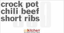 | Crock Pot Chili Beef Short Ribs Recipe | CDKitchen.com tomato sauce, ribs, chili dried/powder, oil, pepper, kidney bean, onion, garlic, salt A recipe for Chili Beef Short Ribs made in the crock pot made with short ribs, vegetable oil, garlic, chili powder, tomato sauce, salt, black pepper, onion Put ribs in pot of boiling water, reduce hea...