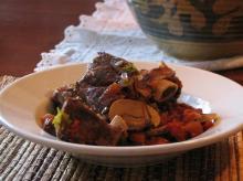 | Braised Short Ribs (Crock Pot) Recipe - Food.com parsley, bay leaf, button mushroom/champignon, onion, garlic, tomato, beef ribs, salt, bread, red wine This recipe is in the October 2008 issue of Bon Appetit and is absolutely delicious. It is very easy to make but looks and tastes like you spent hours on it. Serving Size: 1 (809) g Servings Per Reci...