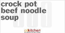 | Crock Pot Beef Noodle Soup Recipe | CDKitchen.com beef steak, beef stock, carrot, onion, celery, tomato, noodles A recipe for Beef Noodle Soup made in the crock pot made with beef broth, crushed tomatoes, steak, onion, carrots, celery, egg Combine the broth, tomatoes, steak, onion, carrots, and celery in the cro...