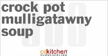 | Crock Pot Mulligatawny Soup Recipe | CDKitchen.com chicken breast, bell pepper, chicken stock, curry powder, pepper, parsley, cloves, apple, sweet potato, carrot, onion, tomato, salt, sugar, lemon juice A recipe for Mulligatawny Soup made in the crock pot made with chicken broth, diced tomatoes, onion, carrot, sweet potato, bell pepper, chicken breast Combine the ingredients in the crock pot and stir...