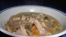| Creamy Crock Pot Turkey Soup Recipe - Food.com chicken soup, pepper, peas, mushrooms, carrot, onion, turkey, seasoning, milk A souper delicious way to use up leftover turkey! Don't hesitate to mix in leftover gravy or veggies. Left over stuffing? Layer it on top of the turkey. No leftover turkey? Cook boneless turkey br...