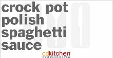 | Crock Pot Polish Spaghetti Sauce Recipe | CDKitchen.com kielbasa, tomato paste, ground beef, pepper, oregano, onion, garlic, sausage, worcestershire sauce, salt, parmesan cheese, brown sugar, lemon juice, water A recipe for Polish Spaghetti Sauce made in the crock pot made with ground beef, kielbasa Polish sausage, tomato paste, water, onion, garlic, black pepper Place all ingredients in crock pot, except me...