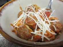 Slow Simmered Spaghetti and Meatballs (Crock Pot) Recipe - Food.com meat balls, spaghetti sauce, olive oil, onion, garlic, tomato, seasoning, parmesan cheese, pasta Serving Size: 1 (219) g Servings Per Recipe: 6 AMT. PER SERVING % DAILY VALUE Calories: 293.8 Calories from Fat 25 g 9 % Total Fat 2.8 g 4 % Saturated Fat 0.7 g 3 % Cholesterol 1.3 mg 0 % Sodi...