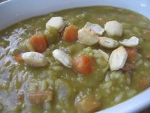 | Crock Pot Split Pea and Ham Soup Recipe - Food.com split peas, chicken stock, thyme, pepper, parsley, carrot, onion, celery, ham, rice, water This is a great way to make split pea soup - just let it cook itself all day long. I like the addition of rice in this recipe. Serving Size: 1 (401) g Servings Per Recipe: 6 AMT. PER SERVING % DAILY...