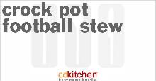 | Crock Pot Football Stew Recipe | CDKitchen.com beef stewing meat, tapioca, potato, carrot, onion, celery, salt, sugar, tomato juice A recipe for Football Stew made in the crock pot made with tomato juice, sugar, tapioca, salt, onions, carrots, celery, potatoes, beef stew Combine tomato juice sugar, tapioca, and salt in crock pot o...