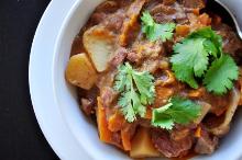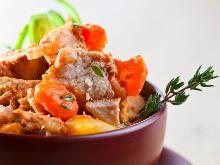 | Spiced Beef Stew In A Crock Pot Recipe beef stewing meat, red potato, chili dried/powder, beef stock, white peppercorn, celery seed, cinnamon, cumin, bay leaf, allspice, button mushroom/champignon, carrot, spring onion, garlic, tomato, sweetcorn, salt, brown sugar, red wine, water, flour Serve this hearty dish with crusty bread. Combine all ingredients in crock pot. Cook on low for 8-10 hours or high for 6 hours. If thickening is needed, add water & flour and cook on high for 15-3...