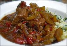 | Crock Pot Pepper Steak Stew Recipe | CDKitchen.com green bell pepper, beef steak, gravy, potato, onion, garlic A recipe for Pepper Steak Stew made in the crock pot made with round steak, green bell pepper, onion, potatoes, beef gravy, minced Combine the steak, bell pepper, onion, potatoes, gravy, and garlic in...