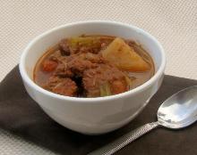 | Crock-Pot Beef Stew Recipe - Food.com beef stewing meat, mashed potato, beef consomme, mushroom soup, onion soup mix, potato, carrot, onion, celery, red wine, cola Easy to throw together, and absolutely delicious! The cola tenderizes the beef and helps create a delicious broth. The red wine gives it great depth of flavor and a distinct heartiness. Serving Size: ...