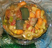 | Crock Pot Mediterranean Stew Recipe - Food.com tomato sauce, chili dried/powder, vegetable stock, turmeric, paprika, cinnamon, cumin, raisin, butternut squash, carrot, onion, garlic, okra, zucchini/courgette, aubergine/eggplant stolen from the Tucson Community-Supported Agriculture newsletter; placed here for safe-keeping! Serving Size: 1 (228) g Servings Per Recipe: 10 AMT. PER SERVING % DAILY VALUE Calories: 98 Calorie...