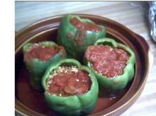 | Lisa's Crock Pot Stuffed Bell Peppers Recipe - Food.com tomato sauce, green bell pepper, garlic salt, ground beef, dried onion, tomato, worcestershire sauce, rice My Italian girlfriend gave me this recipe. We like it so much we eat them at least once a month, which is a rarity because I love a good variety of dinners. This is easy to prepare and it cooks on low...