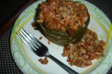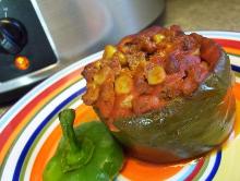 | Southwest Style Vegetable Stuffed Bell Peppers - Crock Pot Recipe - Food.com green bell pepper, chili dried/powder, pepper, kidney bean, onion, tomato, sweetcorn, worcestershire sauce, salt, rice, cheddar cheese We like to go 'meatless' once in awhile. The flavorful combination of ingredients in the stuffing is so hearty, you won't be asking where's the beef? Serving Size: 1 (471) g Servings ...