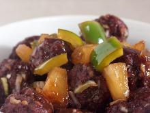 | Crock Pot Sweet And Sour Meatballs Over Rice Recipe | CDKitchen green bell pepper, ground beef, cornstarch, oil, pepper, pineapple, onion, eggs, vinegar, soy sauce, salt, rice, sugar Browned meatballs are slow cooked in a sweet and sour sauce with pineapple and green pepper and served over cooked rice. Combine the ground beef, egg, 1 tablespoon of the cornstarch, salt, pepper, and...