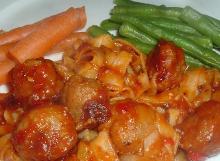 | Not Too Sweet & Sour Meatballs (Crock Pot) Recipe - Food.com meat balls, pasta sauce, liquid smoke, pepper, dried onion, dried garlic, apple, tomato, salt, lemon juice Here is something I came up with after makeing a Apple butter that came out to sweet and didn't want to throw it away and this is what I came up with And it will be my standard meat ball recipe fr...