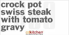 | Crock Pot Swiss Steak With Tomato Gravy Recipe | CDKitchen.com beef steak, gravy, oil, pepper, onion, tomato, salt, water, flour A 5-star recipe for Swiss Steak With Tomato Gravy made in the crock pot made with round steak, vegetable oil, tomatoes, flour, onion, salt and pepper Spray crock pot with Pam. Turn on low. Heat oil in...