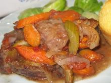 | Crock Pot Swiss Steak Recipe - Food.com red potato, beef steak, gravy, oil, pepper, carrot, onion, tomato, beef, salt Tender beef and vegetables all so easy to make in the crockpot. Just make a quick tossed salad to go with and you're set for dinner. Serving Size: 1 (388) g Servings Per Recipe: 6 AMT. PER SERVI...