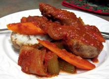 | Swiss Steak (Crock Pot) Recipe - Food.com tomato sauce, beef steak, carrot, onion, celery, worcestershire sauce, salt, flour From a 1975 Rival cookbook. There are several Swiss Steak recipes on Zaar, but I couldn't find this one. Serving Size: 1 (344) g Servings Per Recipe: 4 AMT. PER SERVING % DAILY VALUE Calories: ...