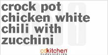 | Crock Pot Chicken White Chili With Zucchini Recipe | CDKitchen.com chicken breast, great northern bean, chili dried/powder, chicken stock, pepper, cumin, onion, garlic, zucchini/courgette, sweetcorn, salt, sour cream A recipe for Chicken White Chili With Zucchini made in the crock pot made with skinless boneless chicken breasts, zucchini, chicken broth, great Northern beans, onions Combine the chicken, zucchini, b...