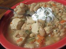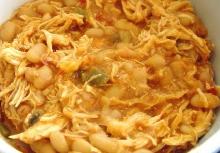 | Chicken & White Bean Chili (Crock Pot) Recipe - Food.com chicken, dried potato, great northern bean, chicken soup, chicken stock, green chili, cumin, spring onion, taco seasoning, monterey jack cheese, cheddar cheese, sour cream, water Cook chicken breasts and soak beans night before. Cook all day while at work or play. Come home to a fantastic meal! (NOTE: prep time does not include cooking chicken and soaking beans) Serving Size: ...