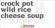 | Crock Pot Wild Rice Cheese Soup Recipe | CDKitchen.com wild rice, potato soup, chicken stock, onion, bacon, cheese, water, half and half A recipe for Wild Rice Cheese Soup made in the crock pot made with wild rice, water, chicken bouillon, cream of potato soup, onion, half and half, bacon Wash wild rice 3 times. Add to water and bouill...