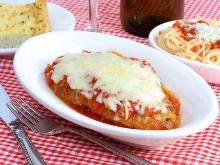 | Crock Pot Chicken And Eggplant Parmigiana Recipe | CDKitchen.com butter, chicken breast, pizza sauce, pepper, aubergine/eggplant, eggs, salt, mozzarella cheese, bread crumbs This crockpot parmigiana combines the best of both worlds--breaded chicken and sliced eggplant, topped off with pizza sauce and a two-cheese topping of melted goodness. If using whole chicken breasts,...