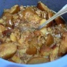 | Sweet Potatoes And Applesauce Recipe by Southern.Crockpot | ifood.tv butter, apple sauce, sweet potato, vegetable fat spread, brown sugar Layer potatoes and applesauce alternately in a buttered 1 1/2-quart casserole. Dot with brown sugar and butter. Bake at 350 for 30 minutes or until flavors are blended and top is brown. Recipe Summ...