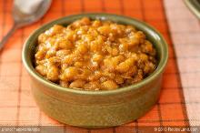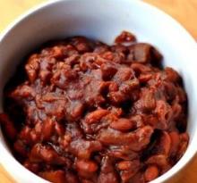 | Microwave Golden Baked Beans Recipe by Southern.Crockpot | ifood.tv pink bean, parsley, navy bean, orange, onion, bacon, mustard, tomato ketchup/catsup, molasses, brown sugar, water MAKING 1) In a 1-quart ovenproof casserole, add the onion, ketchup, water, 2 teaspoons of sugar, mustard, and molasses. Mix well. 2) With a vented plastic wrap, cover the casserole. 3) On high powe...