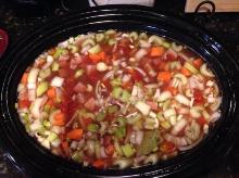 | Crockpot three-bean soup with ground soy crumbles Recipe | SparkRecipes red bean, red onion, green bell pepper, v-8, black beans, soybean, kidney bean, carrot, garlic, celery, tomato, sweetcorn, seasoning, water This is the same soup as my three-bean soup with ground turkey, except substituting soy crumbles for the turkey to make it a vegan meal. This is a double recipe, so you either need a large crockpot or...