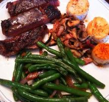 | Sweet Sour Green Beans Recipe by Southern.Crockpot | ifood.tv pepper, onion, green beans, bacon, vinegar, sugar Cut bacon in 1/2-inch pieces. Partially cook bacon in medium skillet; add onion and cook until onion is lightly browned. Drain beans and add liquid to bacon and onion; cook down to about 1/2 cup liq...