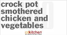 | Smothered Chicken and Vegetables (Crockpot) Recipe | CDKitchen.com chicken, celery soup, chicken stock, carrot, onion, celery A recipe for Smothered Chicken and Vegetables made in the crock pot made with carrots, celery, onion, cooked chicken, cream of celery soup, chicken Place the carrots, celery, and onion in the bottom o...